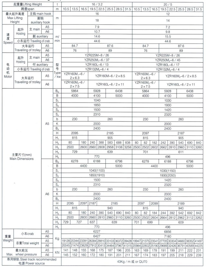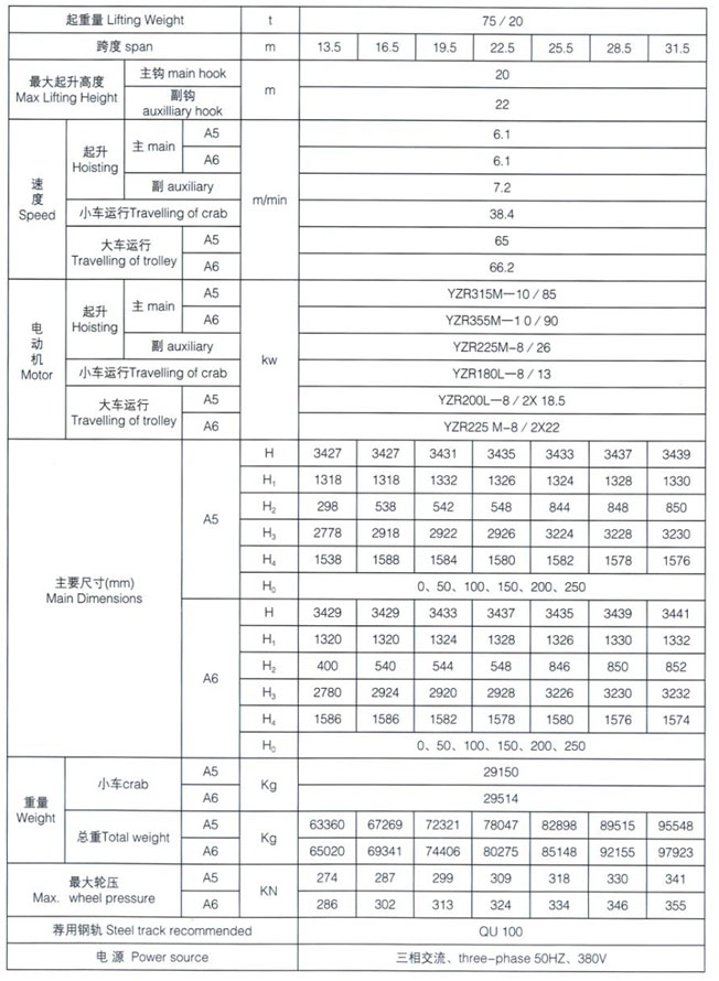 QD型5~100/20t吊鉤橋式起重機